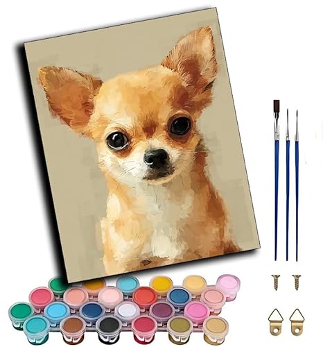 YUNLINZI Peinture par Numéros pour Adulte,Cute Chihuahua portrait Kits de Peinture au Numéro, Coloriage Par Numéro Pour La Décoration De La Maison (40x50 cm),sans cadre