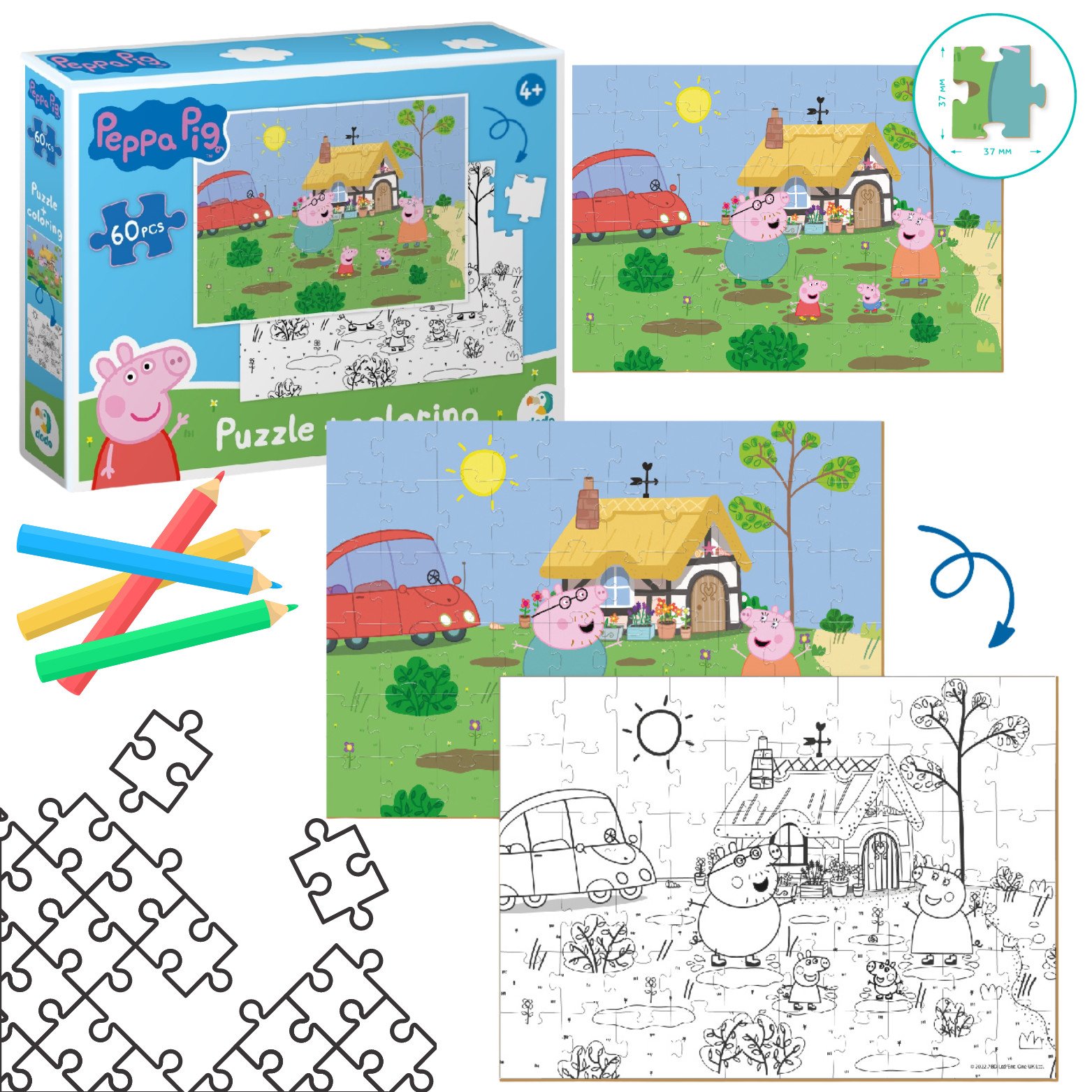 PUZZLE 2-EN-1 PEPPA PIG 60 PIÈCES + COLORIAGE EN UN 200119