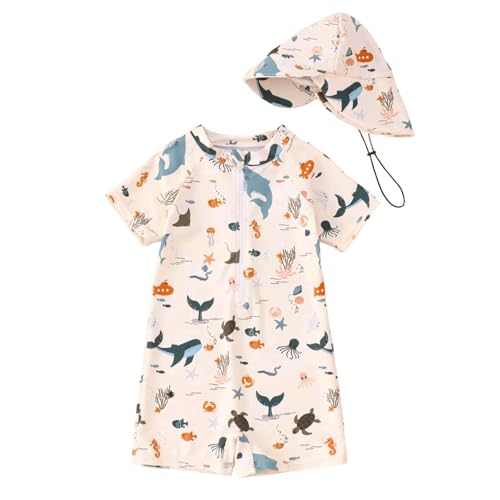 Générique Combinaison Anti UV Bebe Garcon, Maillot de Bain Une pièce - avec Chapeau pour Nourrisson Combinaison intégrale imprimée et Fermeture éclair pour bébé garçon ou Fille