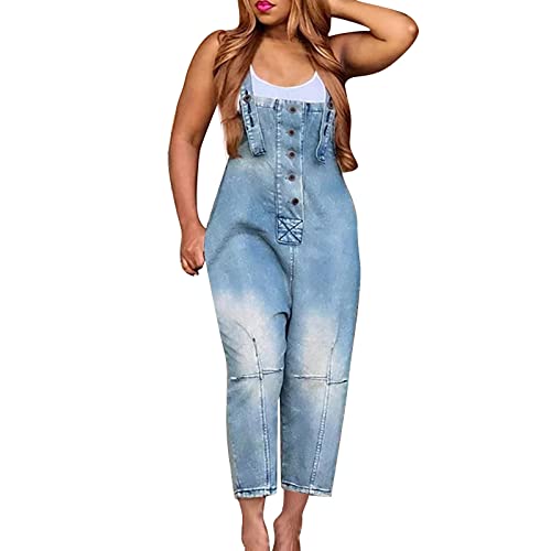 Dasongff Femme Salopette Jeans Combinaison Grande Taille, Loose Casual Large Ample Harem Sarouel Pantalon, Denim Boyfriend Jumpsuit Pantalon Casual Lâche pour Printemps Automne