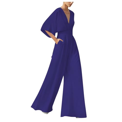 Combinaison Femme Chic pour SoiréE, Jumpsuit Femme Couleur Unie Taille Haute Coupe AjustéE Manches 3/4 Barboteuses Mode DéContractéE Jambes Larges avec Poches Mode Playsuit pour FêTe Travail Bureau