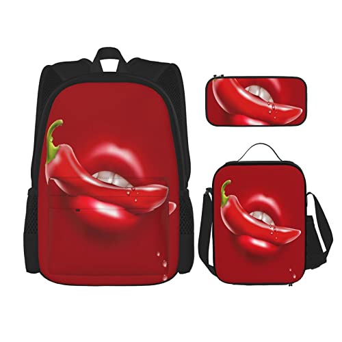 pièces ensemble sacs à dos piment dans la femme bouche et gouttes d'eau sac de livre voyage camping travail sac d'école trousse à crayons sac à déjeuner combinaison pour hommes femmes garçons filles