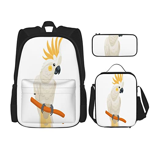 3 pièces ensemble sacs à dos oiseau cacatoès animaux isolés faune nature exotique perroquet tropical mode livre sac voyage travail école sac porte-crayon sac à déjeuner combinaison pour hommes femme
