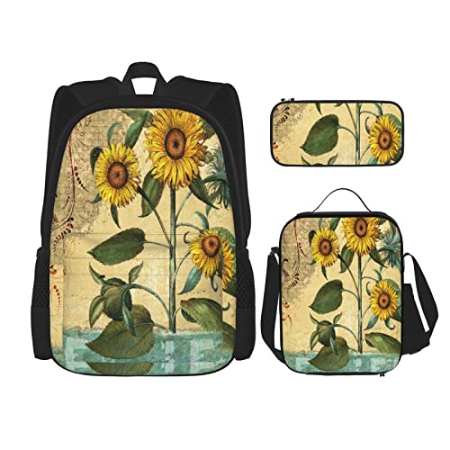 pièces ensemble sacs à dos tournesol rétro art peinture vintage plante feuille créatif jaune beige vert livre sac voyage travail école sac trousse à crayons sac à lunch combinaison pour hommes femme