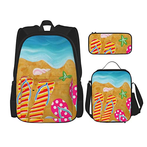 IUBBKI Lot de 3 sacs à dos d'été, pantoufles, sac de livre pour femme, voyage, camping, travail, école, trousse à crayons, sac à déjeuner, combinaison pour homme, femme, garçon, fille,