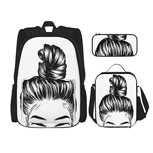 3 pièces ensemble sacs à dos fille bain croquis de femme mode chignon parfait sourcil cils livre sac voyage camping travail sac d'école trousse à crayons sac à déjeuner combinaison pour hommes femme