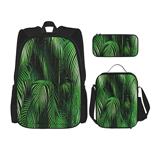 3 pièces ensemble sacs à dos tropical exotique palmier feuilles branches botanique jungle jardin nature livre sac voyage travail école sac trousse à crayons sac à lunch combinaison pour hommes femme