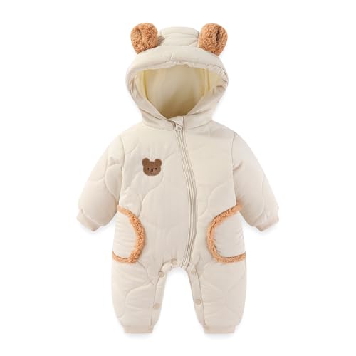 WYTbaby Combinaison Bebe Hiver Polaire Combinaison Pilote Bébé à Capuche, Manches Longues Ours Combinaison de Neige Garcon Fille 6-9 Mois