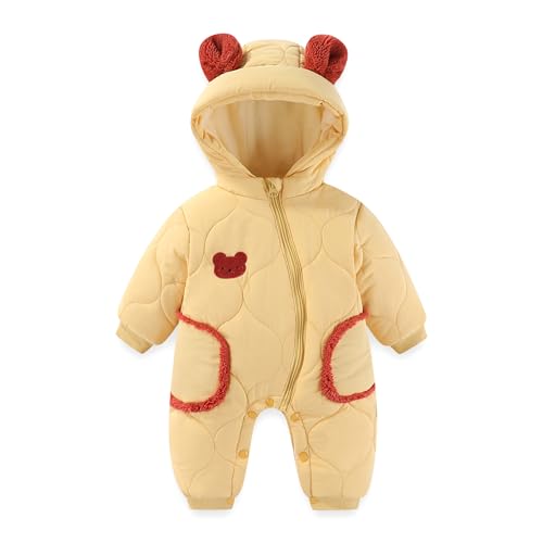 Combinaison Hiver Bebe Fille 18 Mois - Combinaison en Polaire épaisse pour Nouveau-né Tenue Ours Fille et garçon Manteau à Capuche vêtements Chauds d'hiver vêtements Neige (Yellow 3-6 Months)