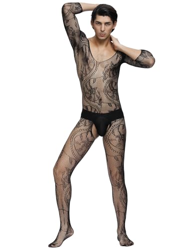 comeondear Bodystocking Sexy Homme Ouverte Grande Taille Lingerie Sexy Homme Résille Body Transparent Combinaison Fishnet sous-Vêtements Collant Tenue Nuisettes Bas Nylon Noir B,L-XXL