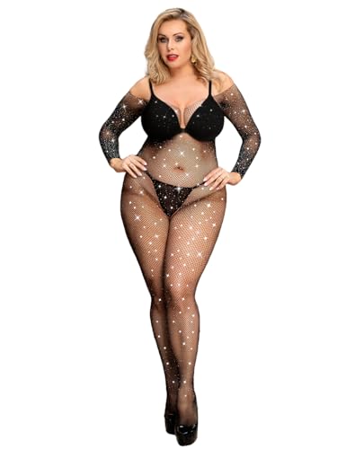 ohyeahlady Body Sexy Femme Erotique avec Strass Lingerie Sexy Hot Chaude Tenue Sexy Coquine Pute Bodys Combinaison Chic Collant Bas Résille Bodystocking Grande Taille
