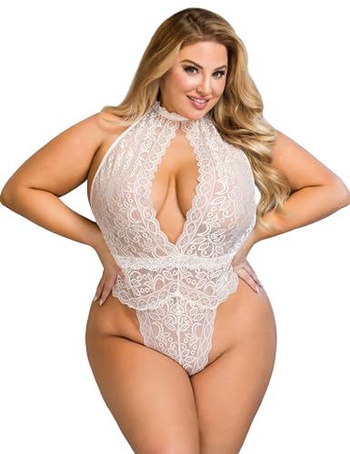 Body Dentelle Sexy Femme Grande Taille Body String Chic Lingerie Ouverte Tenue Hot Nuisette Romantique Combinaison Lingerie et Vêeements Sous Vetement Lingerie Dentelle Ensemble Teddy Blanc,3XL-4XL