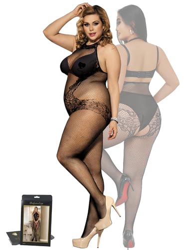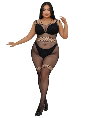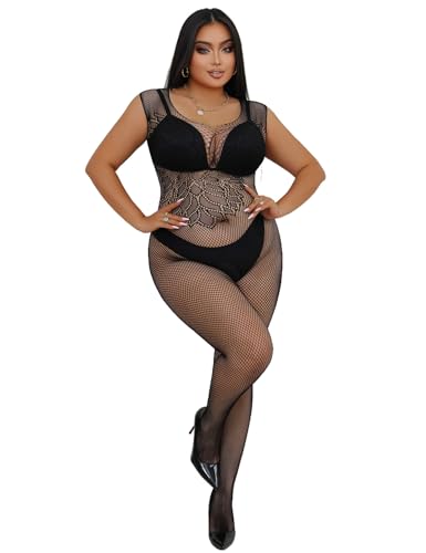 comeondear Bodystocking Grande Taille Ouverte Entrejambe Érotique Femme Résille Body Sexy Tenue Bas Fishnet Lingerie de Nuit sous-Vêtements Feminins Bodysuit Nuisettes Combinaison Noir,3XL-5XL