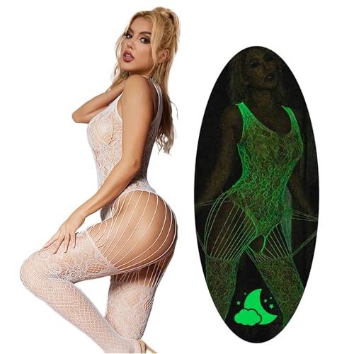 comeondear Bodystocking Grande Taille Ouverte Entrejambe Érotique Femme Résille Body Sexy Tenue Bas Fishnet Lingerie de Nuit sous-Vêtements Feminins Bodysuit Nuisettes Combinaison Blanc,XS-M