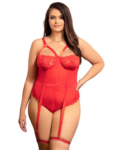 ohyeahlady Body Sexy Chic Avec Armature Grande Taille Body Dentelle Porte Jarretelle Harnais Ensemble Lingerie Tenu Dessous Hot Combinaison Lingerie Et VêTements Ouverte Deguisement Rouge,3XL-4XL