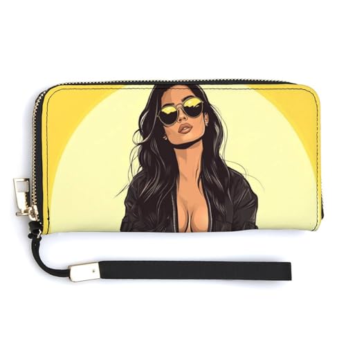 Jubonexis Portefeuille long à deux volets en cuir synthétique avec combinaison pilote de dessin animé femme en noir, porte-monnaie, carte de crédit, rangement de l'argent durable pour homme et femme