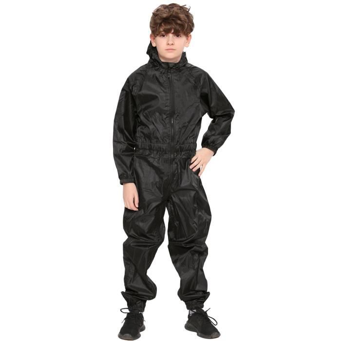 Combinaison de pluie enfant imperméable noire tout-en-un - Marque - Modèle - Poignets côtelés