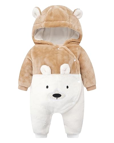 WYTbaby Combinaison Bébé Hiver Polaire à Capuche, Manches Longues Ours Combinaison de Neige Garçon Fille 9-12 Mois