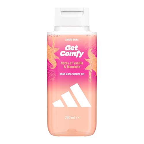 adidas Vibes Get Comfy Gel douche, 250 ml, lot de 1, notes de vanille et de mandarine, parfum unisexe