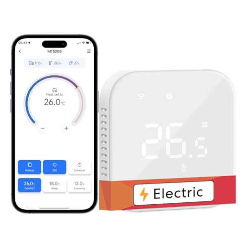 Meross Matter Thermostat Connecté, Thermostat WiFi pour Électrique/Chauffage au Sol Électrique Compatible avec HomeKit, Alexa et Google Home, Commande Vocale et Programme