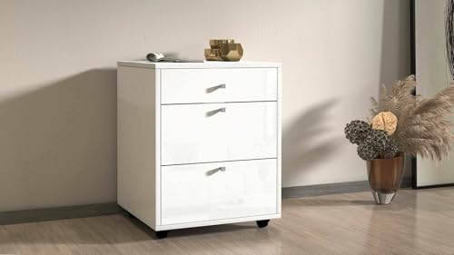 Habitdesign Modèle Loft Commode 3 tiroirs Blanc brillant 76 x 80 x 40 cm