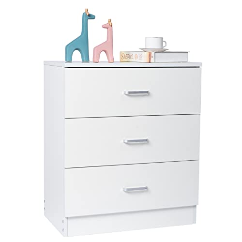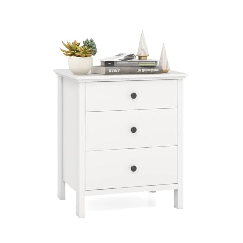 KOMFOTTEU Commode à 3 Tiroirs, Petit Meuble de Rangement en Bois, Armoire à Tiroirs élégante, pour Chambre, Salon, Bureau, Table d'Appoint, 56 x 45 x 66 cm (Blanc)