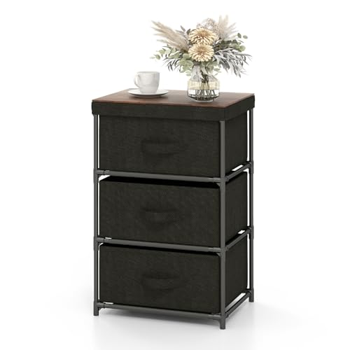 KOMFOTTEU Commode avec 3 Tiroirs Amovibles & Pliable, Meuble de Rangement en Tissu, Cadre Métallique Robuste, idéal pour Chambre, Salon, Bureau, Étude, 40 x 30 x 62 cm (L x l x H) (Noir, Lot de 1)