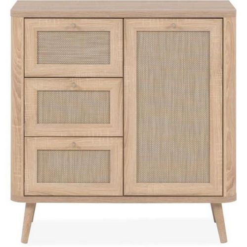 Commode - 3 tiroirs - 1 porte - Décor Cannage - L80,9 x H84 x P40 cm