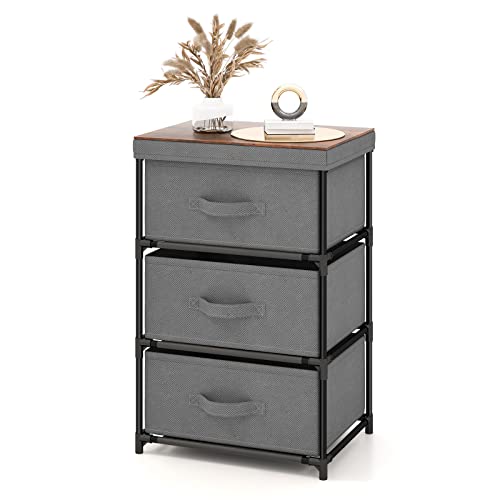 GIANTEX Commode 3 Tiroirs en Tissu,Commode Chambre à 3 Niveaux, Tiroirs Pliables avec Poignées, Cadre en Métal, Grand Plateau, Meuble de Rangement pour Chambre, Salon, Entrée (Gris)
