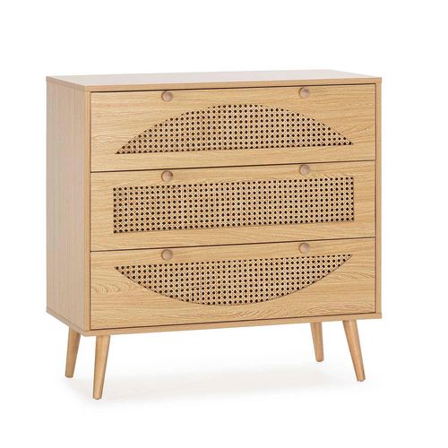 Commode - 3 tiroirs - Décor Chêne- Cannage - L904 x P414 x H80 cm - CALASETTA