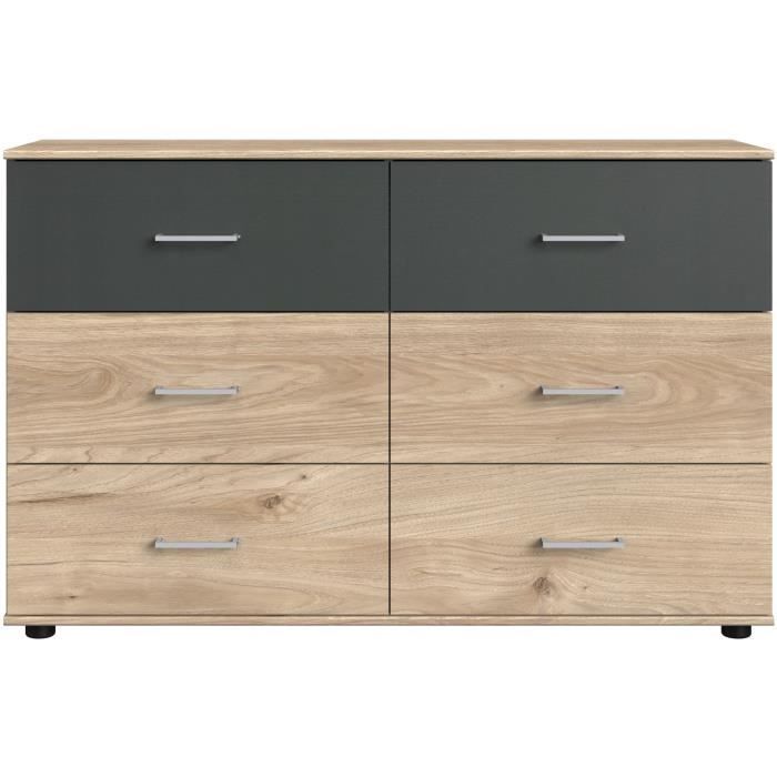 Commode RHODES - 6 tiroirs - Décor Chêne et gris - L130 x P41 x H83 cm