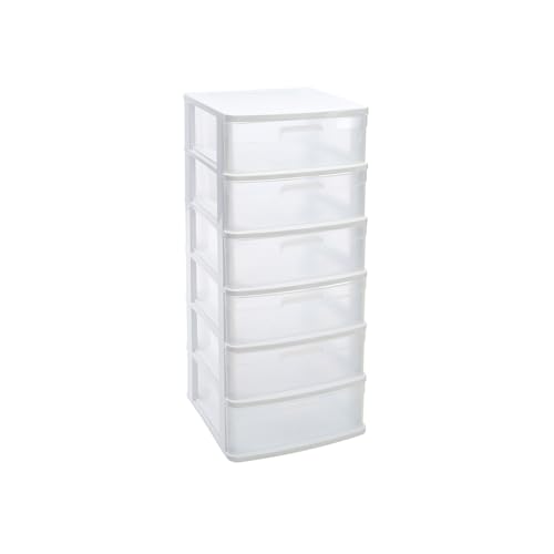 DRW Commode haute 6 tiroirs PVC translucide et blanc 39 x 40 x 96,5 cm