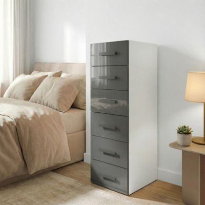Commode 6 tiroirs anthracite et blanc GoodHome Atomia H. 112,5 x L. 37,5 x P. 47 cm
