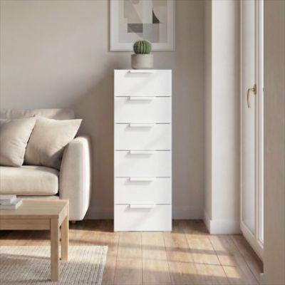 Commode blanche 6 tiroirs GoodHome Atomia H. 112,5 x L. 37,5 x P. 45 cm