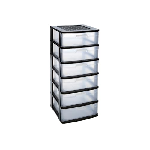 DRW Commode haute 6 tiroirs PVC translucide et noir 39 x 40 x 96,5 cm