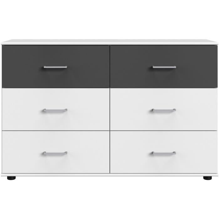 Commode RHODES - 6 tiroirs - Décor Blanc et gris - L130 x P41 x H83 cm
