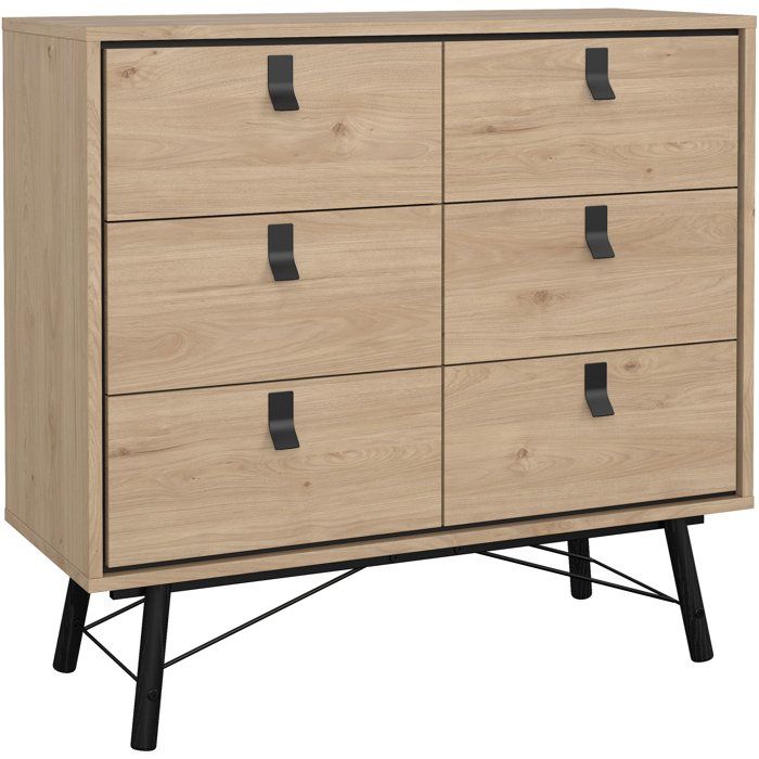 Commode effet chêne 6 tiroirs GoodHome Atomia H. 112,5 x L. 37,5 x P. 45 cm