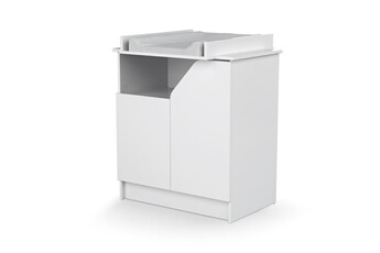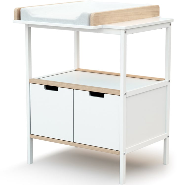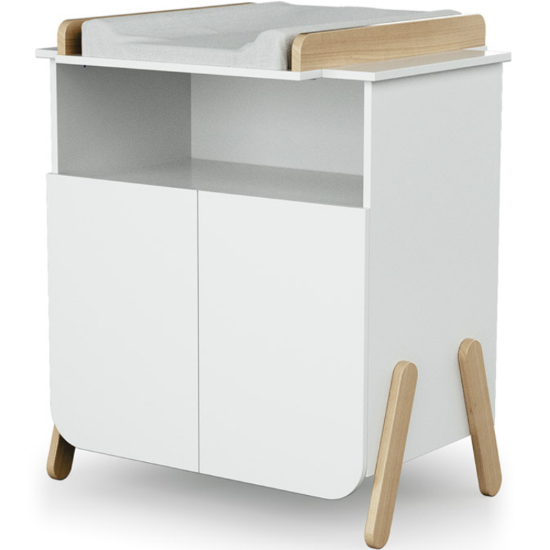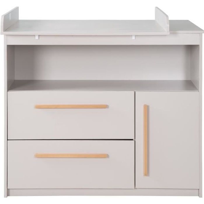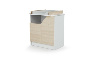 Commode à langer - Babyprice - Joy Naturel - 2 tiroirs - 1 niche - Blanc - Sur pieds en bois naturel