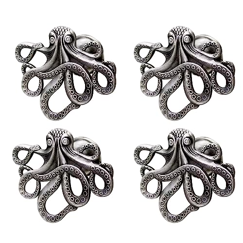 LFWATAXY Lot de 4 poignées en forme d'animal, pieuvre, porte à trou unique, décoration de meubles de maison, décoration de salle de bain, commode, tiroir, quincaillerie (argent)