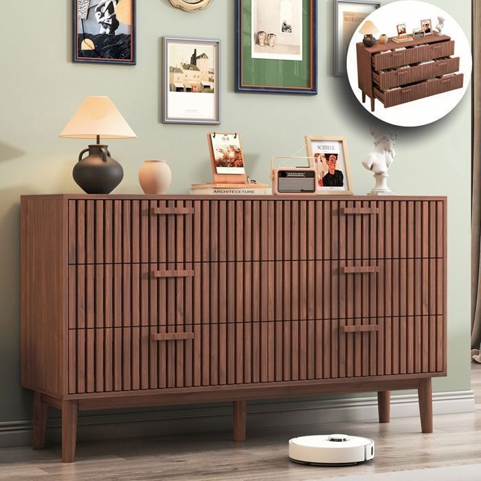 Commode 6 tiroirs - RAVAS - commode chambre - aspect grain de bois - meuble a tiroir - 100 x 34 x 73 cm - Couleur noyer