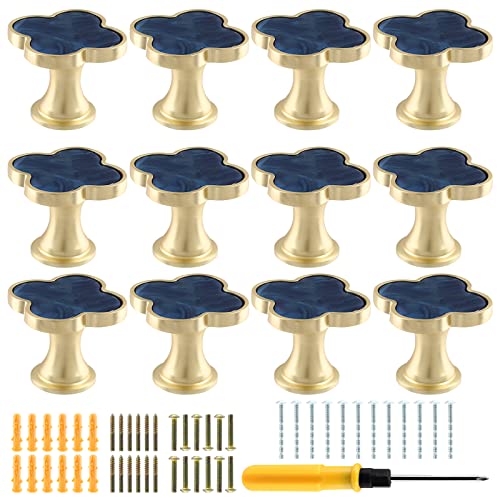 Cionyce Clover – Lot de 12 boutons de placard en alliage de zinc à trou unique, poignées de tiroir en forme de trèfle à quatre feuilles pour commode, armoire, coiffeuse (bleu)