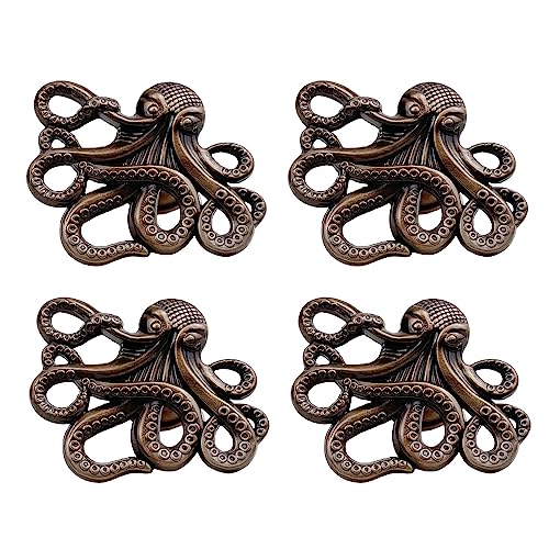 LFWATAXY Lot de 4 poignées en forme d'animal - Pieuvre, porte à trou unique, animal créatif, pieuvre, décoration de salle de bain, commode, tiroir, quincaillerie (cuivre rouge)