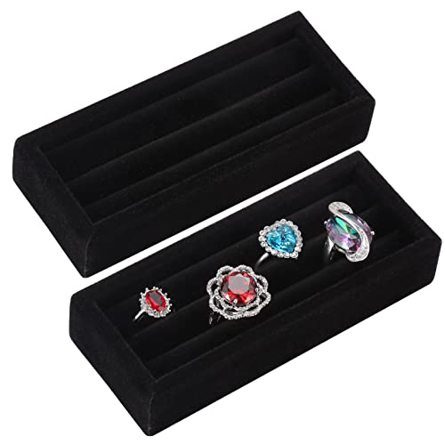 Glenor Co Lot de 2 plateaux de rangement empilables à 6 emplacements pour bijoux - À poser sur une commode ou un tiroir - Compatible avec d'autres plateaux Noir