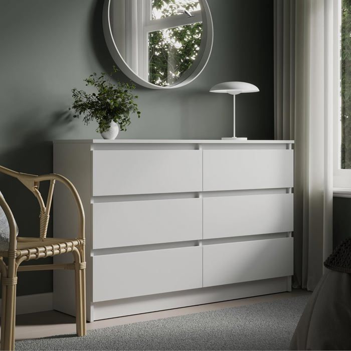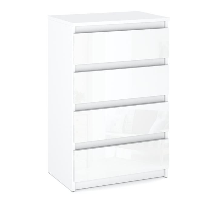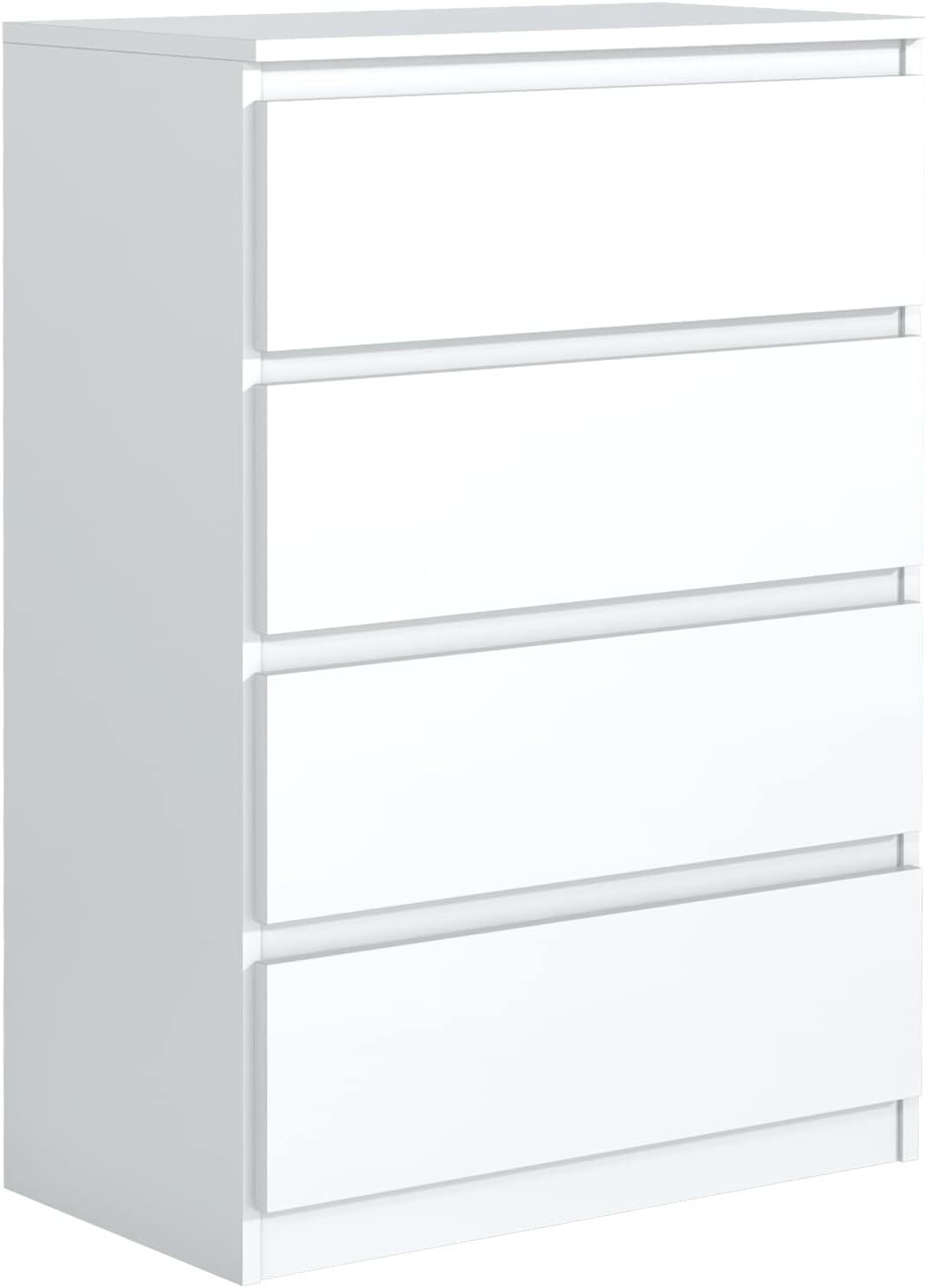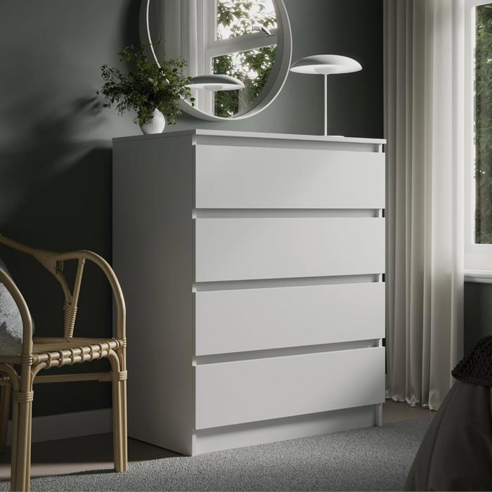 Commode de chambre 4 tiroirs - 80x50x100 cm - Commode blanche style scandinave - Meuble de rangement