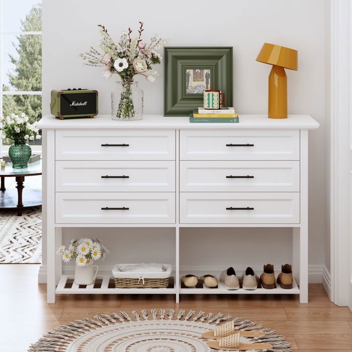Commode de chambre avec 6 tiroirs/ 100x34x73cm- Blanc - Meuble de bureau/salon - Meuble de rangement