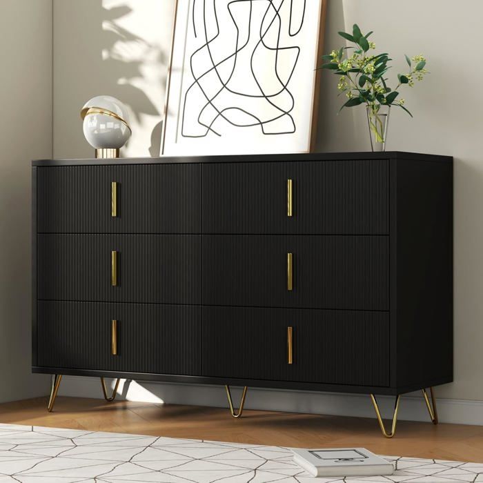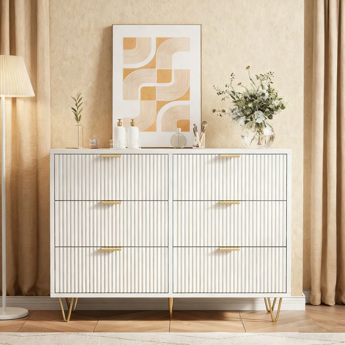 Commode de chambre avec 6 tiroirs/ 100x34x73cm- Blanc - Meuble de bureau/salon - Meuble de rangement