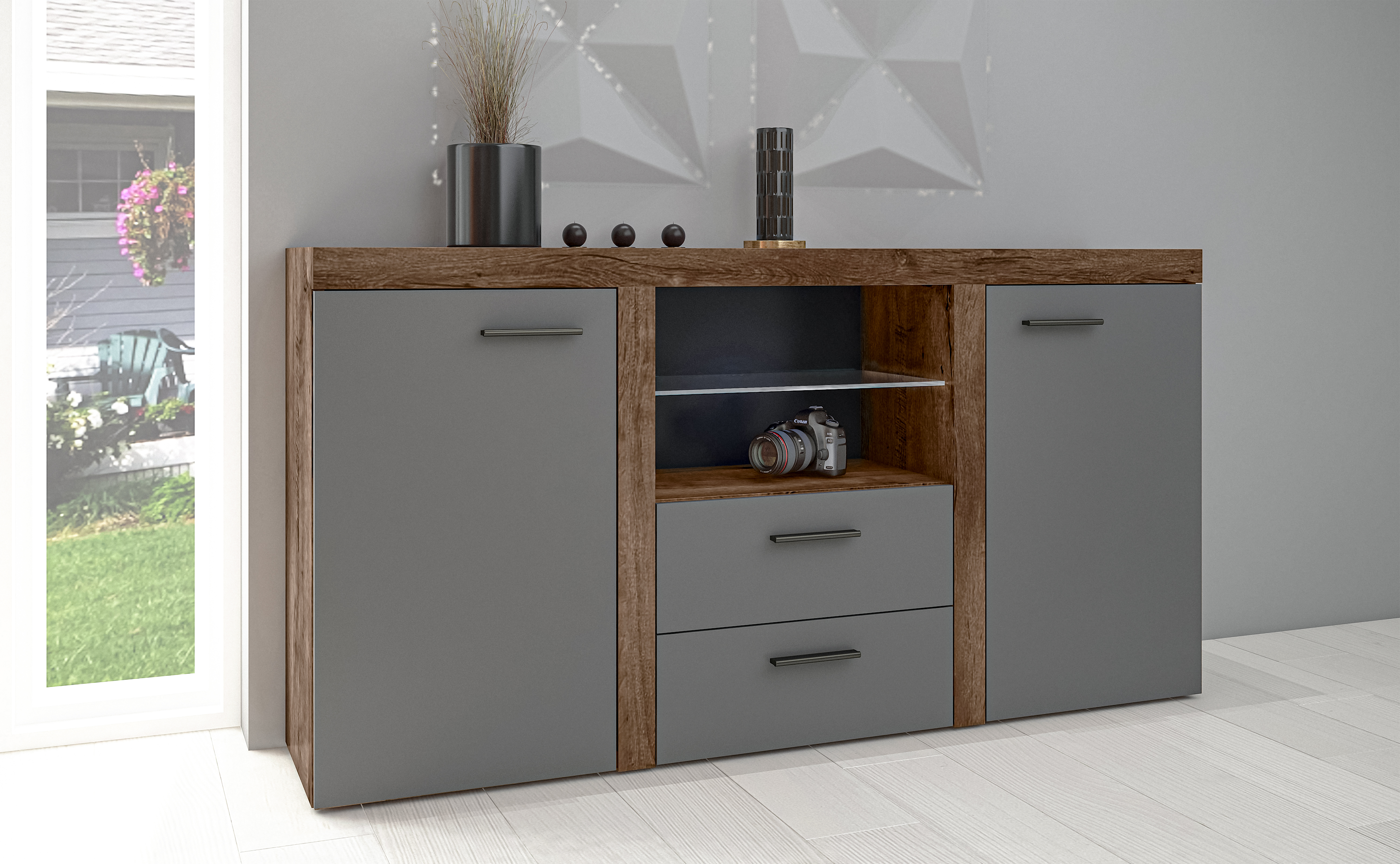 AX LIVING Meuble tiroirs portes Spacoro 2F2S commode chene lefkas gris