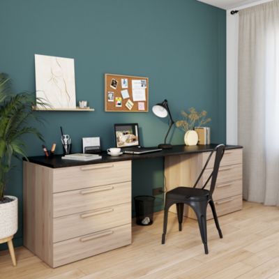 Vente Unique Commode 6 tiroirs Placage chêne Coloris : Naturel et noir SINOLO
