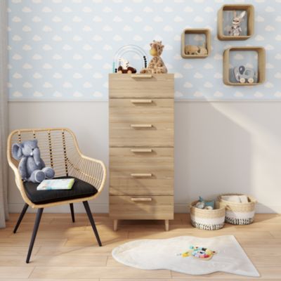 Commode effet chêne sur pieds 6 tiroirs chambre enfant GoodHome Atomia H. 123 x L. 50 x P. 45 cm