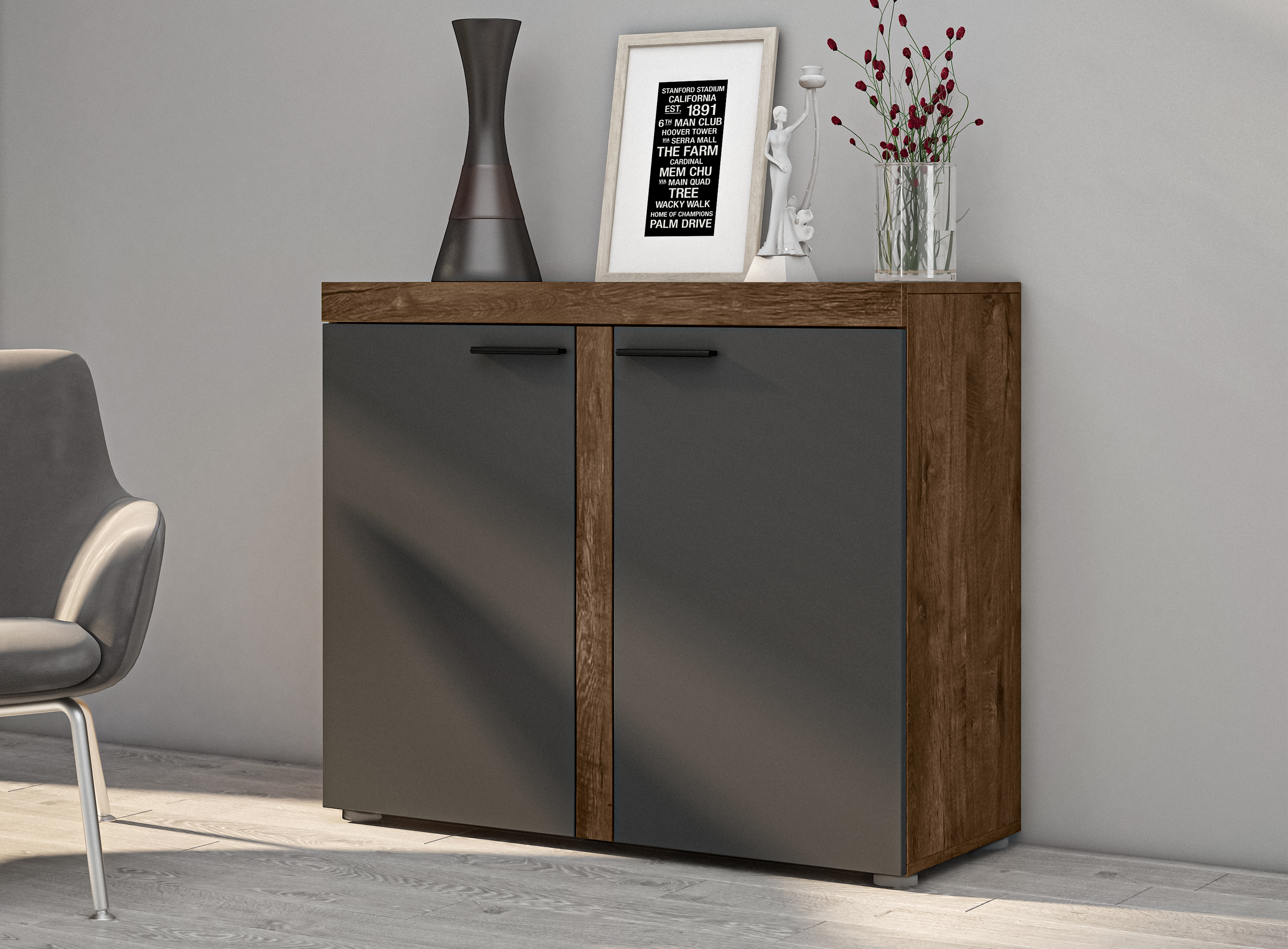 AX LIVING Meuble 2 portes Spacoro 2D meuble commode chene lefkas gris